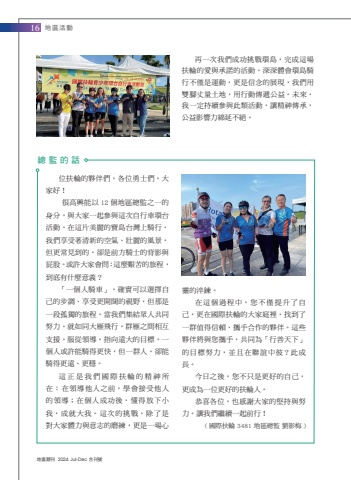 %u5730%u5340%u671f%u520a 2024. Jul-Dec %u5408%u520a%u865f16%u5730%u5340%u6d3b%u52d5%u4f4d%u6276%u8f2a%u7684%u5925%u4f34%u5011%uff0c%u5404%u4f4d%u52c7%u58eb%u5011%uff0c%u5927%u5bb6%u597d%uff01 %u5f88%u9ad8%u8208%u80fd%u4ee5 12 %u500b%u5730%u5340%u7e3d%u76e3%u4e4b%u4e00%u7684%u8eab%u5206%uff0c%u8207%u5927%u5bb6%u4e00%u8d77%u53c3%u8207%u9019%u6b21%u81ea%u884c%u8eca%u74b0%u53f0%u6d3b%u52d5%u3002%u5728%u9019%u7247%u7f8e%u9e97%u7684%u5bf6%u5cf6%u53f0%u7063%u4e0a%u9a0e%u884c%uff0c%u6211%u5011%u4eab%u53d7%u8457%u6e05%u65b0%u7684%u7a7a%u6c23%u3001%u58ef%u9e97%u7684%u98a8%u666f%uff0c%u4f46%u66f4%u5e38%u898b%u5230%u7684%uff0c%u537b%u662f%u524d%u65b9%u9a0e%u58eb%u7684%u80cc%u5f71%u8207%u5c41%u80a1%u3002%u6216%u8a31%u5927%u5bb6%u6703%u554f%uff1a%u9019%u9ebc%u8271%u82e6%u7684%u65c5%u7a0b%uff0c%u5230%u5e95%u6709%u4ec0%u9ebc%u610f%u7fa9%uff1f %u300c%u4e00%u500b%u4eba%u9a0e%u8eca%u300d%uff0c%u78ba%u5be6%u53ef%u4ee5%u9078%u64c7%u81ea%u5df1%u7684%u6b65%u8abf%u3001%u4eab%u53d7%u66f4%u958b%u95ca%u7684%u8996%u91ce%uff0c%u4f46%u90a3%u662f%u4e00%u6bb5%u5b64%u7368%u7684%u65c5%u7a0b%u3002%u7576%u6211%u5011%u96c6%u7d50%u773e%u4eba%u5171%u540c%u52aa%u529b%uff0c%u5c31%u5982%u540c%u5927%u96c1%u98db%u884c%uff0c%u7fa4%u96c1%u4e4b%u9593%u76f8%u4e92%u652f%u63f4%uff0c%u670d%u5f9e%u9818%u5c0e%uff0c%u6307%u5411%u9060%u5927%u7684%u76ee%u6a19%u3002%u4e00%u500b%u4eba%u6216%u8a31%u80fd%u9a0e%u5f97%u66f4%u5feb%uff0c%u4f46%u4e00%u7fa4%u4eba%uff0c%u537b%u80fd%u9a0e%u5f97%u66f4%u9060%u3001%u66f4%u7a69%u3002 %u9019%u6b63%u662f%u6211%u5011%u570b%u969b%u6276%u8f2a%u7684%u7cbe%u795e%u6240%u5728%uff1a%u5728%u9818%u5c0e%u4ed6%u4eba%u4e4b%u524d%uff0c%u5b78%u6703%u63a5%u53d7%u4ed6%u4eba%u7684%u9818%u5c0e%uff1b%u5728%u500b%u4eba%u6210%u529f%u5f8c%uff0c%u61c2%u5f97%u653e%u4e0b%u5c0f%u6211%uff0c%u6210%u5c31%u5927%u6211%u3002%u9019%u6b21%u7684%u6311%u6230%uff0c%u9664%u4e86%u662f%u5c0d%u5927%u5bb6%u9ad4%u529b%u8207%u610f%u5fd7%u7684%u78e8%u7df4%uff0c%u66f4%u662f%u4e00%u5834%u5fc3%u9748%u7684%u6dec%u934a%u3002 %u5728%u9019%u500b%u904e%u7a0b%u4e2d%uff0c%u60a8%u4e0d%u50c5%u63d0%u5347%u4e86%u81ea%u5df1%uff0c%u66f4%u5728%u570b%u969b%u6276%u8f2a%u7684%u5927%u5bb6%u5ead%u88e1%uff0c%u627e%u5230%u4e86%u4e00%u7fa4%u503c%u5f97%u4fe1%u8cf4%u3001%u651c%u624b%u5408%u4f5c%u7684%u5925%u4f34%u3002%u9019%u4e9b%u5925%u4f34%u5c07%u8207%u60a8%u651c%u624b%uff0c%u5171%u540c%u70ba%u300c%u884c%u5584%u5929%u4e0b%u300d%u7684%u76ee%u6a19%u52aa%u529b%uff0c%u4e26%u4e14%u5728%u806f%u8abc%u4e2d%u5f7c%uff1f%u6b64%u6210%u9577%u3002 %u4eca%u65e5%u4e4b%u5f8c%uff0c%u60a8%u4e0d%u53ea%u662f%u66f4%u597d%u7684%u81ea%u5df1%uff0c%u66f4%u6210%u70ba%u4e00%u4f4d%u66f4%u597d%u7684%u6276%u8f2a%u4eba%u3002 %u606d%u559c%u5404%u4f4d%uff0c%u4e5f%u611f%u8b1d%u5927%u5bb6%u7684%u5805%u6301%u8207%u52aa%u529b%u3002%u8b93%u6211%u5011%u7e7c%u7e8c%u4e00%u8d77%u524d%u884c%uff01 ( %u570b%u969b%u6276%u8f2a 3481 %u5730%u5340%u7e3d%u76e3 %u5289%u5f71%u6885 )%u7e3d %u76e3 %u7684 %u8a71%u518d%u4e00%u6b21%u6211%u5011%u6210%u529f%u6311%u6230%u74b0%u5cf6%uff0c%u5b8c%u6210%u9019%u5834%u6276%u8f2a%u7684%u611b%u8207%u627f%u8afe%u7684%u6d3b%u52d5%u3002%u6df1%u6df1%u9ad4%u6703%u74b0%u5cf6%u9a0e%u884c%u4e0d%u50c5%u662f%u904b%u52d5%uff0c%u66f4%u662f%u4fe1%u5ff5%u7684%u5c55%u73fe%uff0c%u6211%u5011%u7528%u96d9%u8173%u4e08%u91cf%u571f%u5730%uff0c%u7528%u884c%u52d5%u50b3%u905e%u516c%u76ca%u3002%u672a%u4f86%uff0c%u6211%u4e00%u5b9a%u6301%u7e8c%u53c3%u8207%u6b64%u985e%u6d3b%u52d5%uff0c%u8b93%u7cbe%u795e%u50b3%u627f%uff0c%u516c%u76ca%u5f71%u97ff%u529b%u7dbf%u5ef6%u4e0d%u7d55%u3002